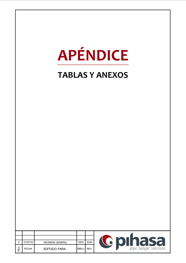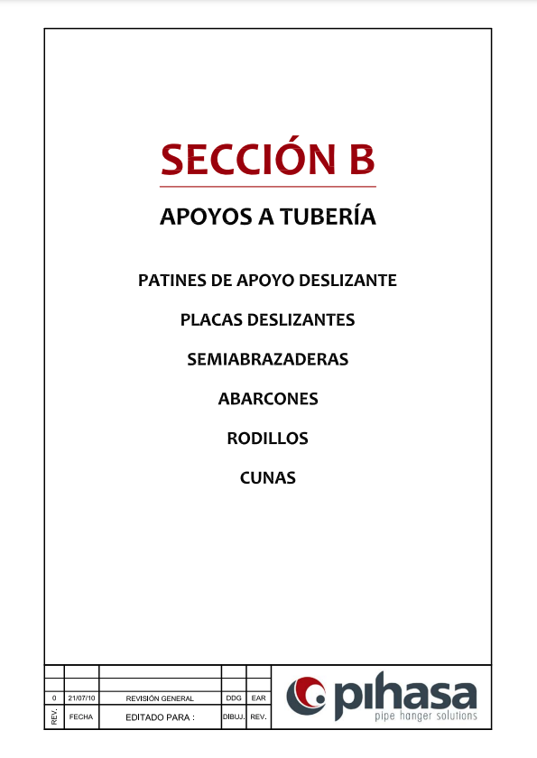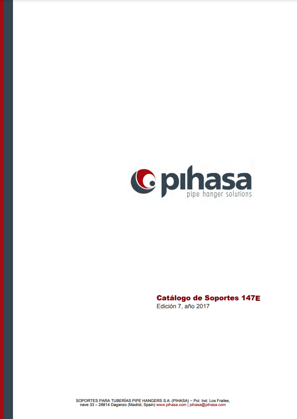Descargas Catálogo de soportes de tuberías Catálogo de soportes de tuberías Catálogo 147 completo ES EN FR Sección A Componentes de colgantes ES EN FR Sección B Apoyos a tubería ES EN FR Sección C Soportes preaislados ES EN FR Sección D Soportes de muelle de carga variable ES EN FR Sección E Muelles de carga constante ES EN FR Sección F Restricciones mecánicas y amortiguadores hidráulicos ES EN FR Apéndice catálogo 147 ES EN FR Ver guías de montaje para tuberías ¿Tienes alguna duda o consulta? Contáctanos