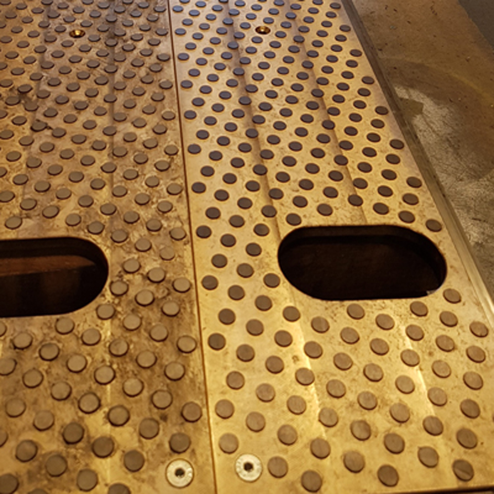 As a top slider, it is recommended to use a polished or semi-polished stainless steel plate, in order to ensure a low friction coefficient and a long life span of the main sliding element.