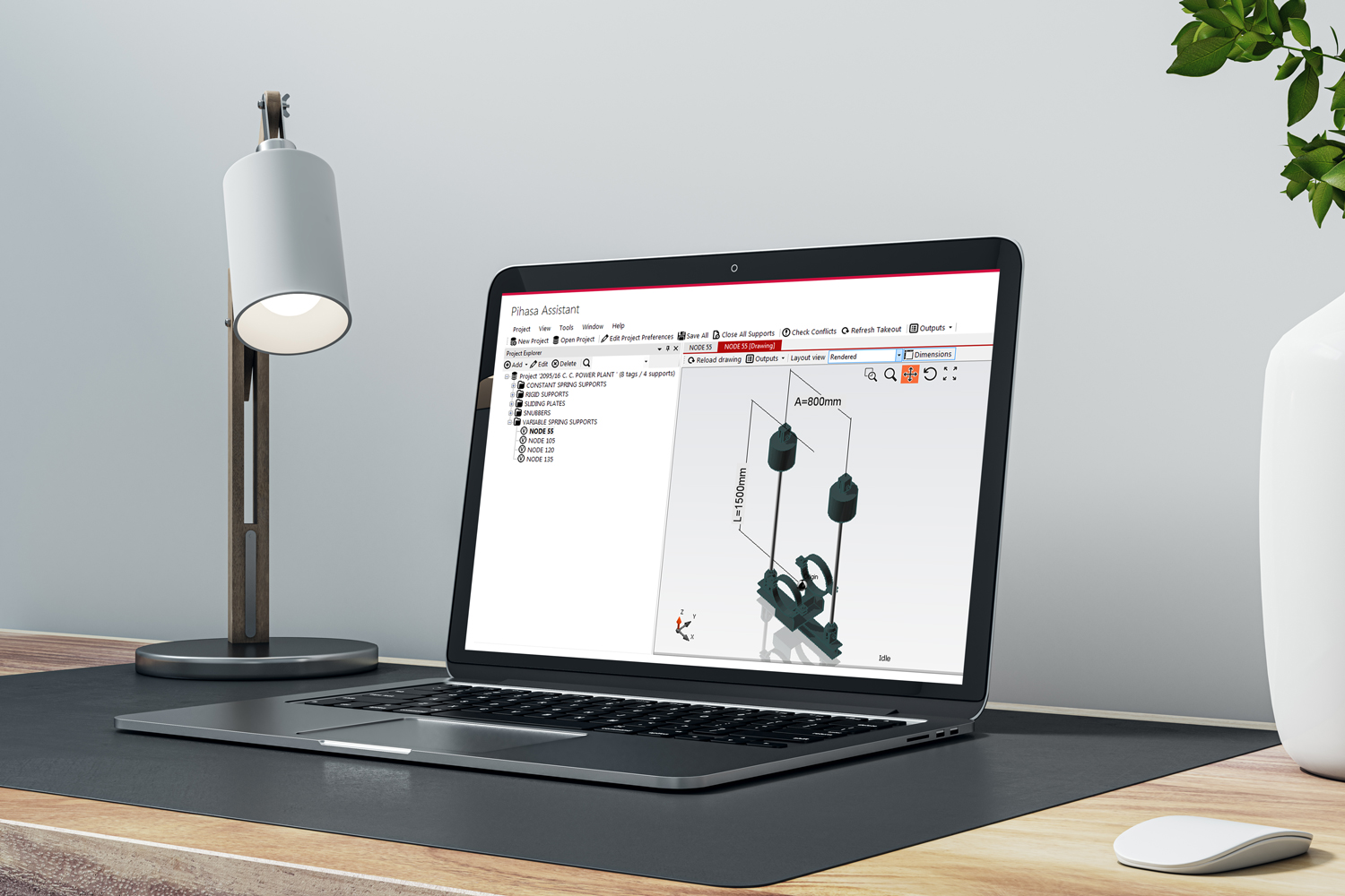 Pihasa has developed its freeware Pihasa Assistant in order to help all our clients handle the detail design of pipe supports in an automatic manner. The software assists the user in the entry of data and selection of support types, and chooses and calculates the appropriate catalogue components with all their relevant and specific technical characteristics, in a very intuitive and transparent manner, while making recommendations on sizes and dimensions. Finally, the software generates bills of materials, takeout datasheets, and dimensional drawings.
