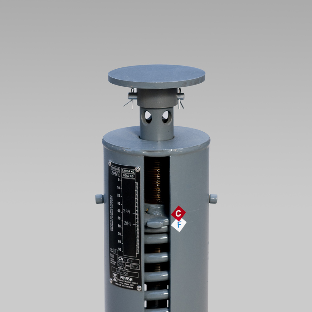 Soportes elásticos que permiten movimientos verticales de las tuberías producidos por dilataciones térmicas, a la vez que soportan el peso de las mismas. El valor de la carga ejercida varía con el desplazamiento vertical, motivo por el cual se emplean cuando el recorrido vertical es de un rango medio o bajo (hasta niveles de 50-75 mm).